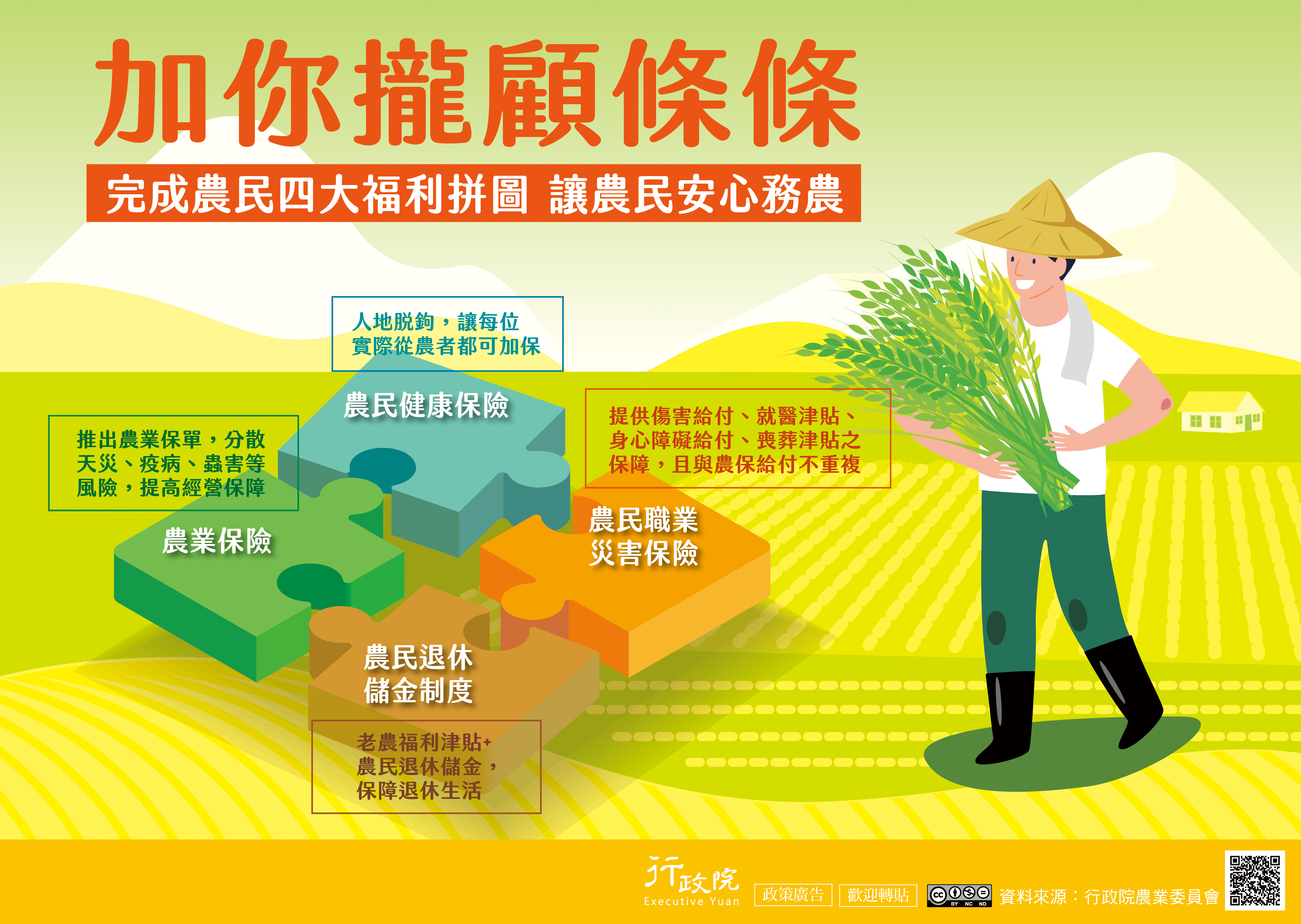轉發行政院新聞傳播處推廣「完成農民四大福利拚圖」政策溝通電子單張文宣。